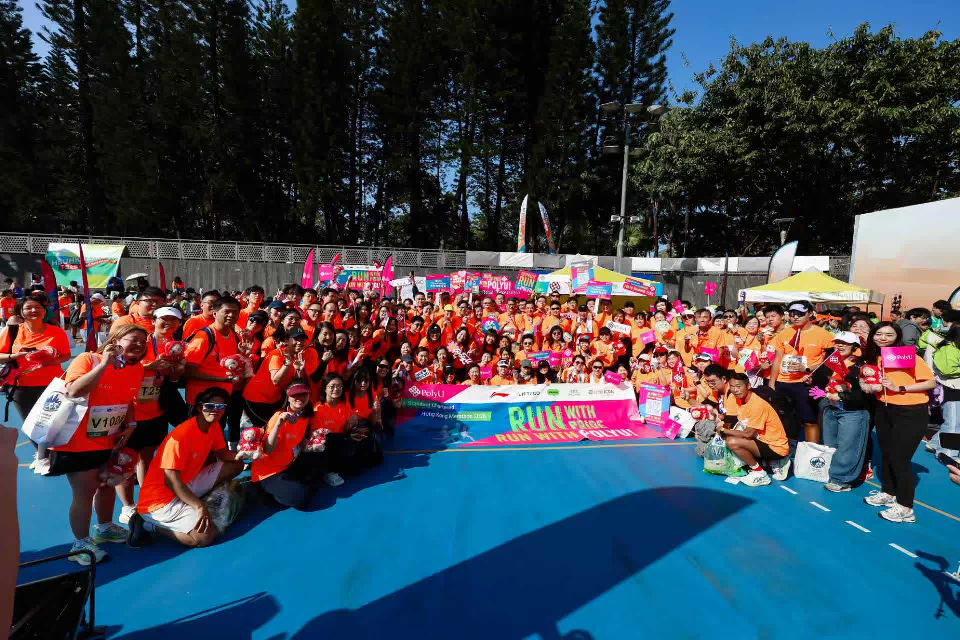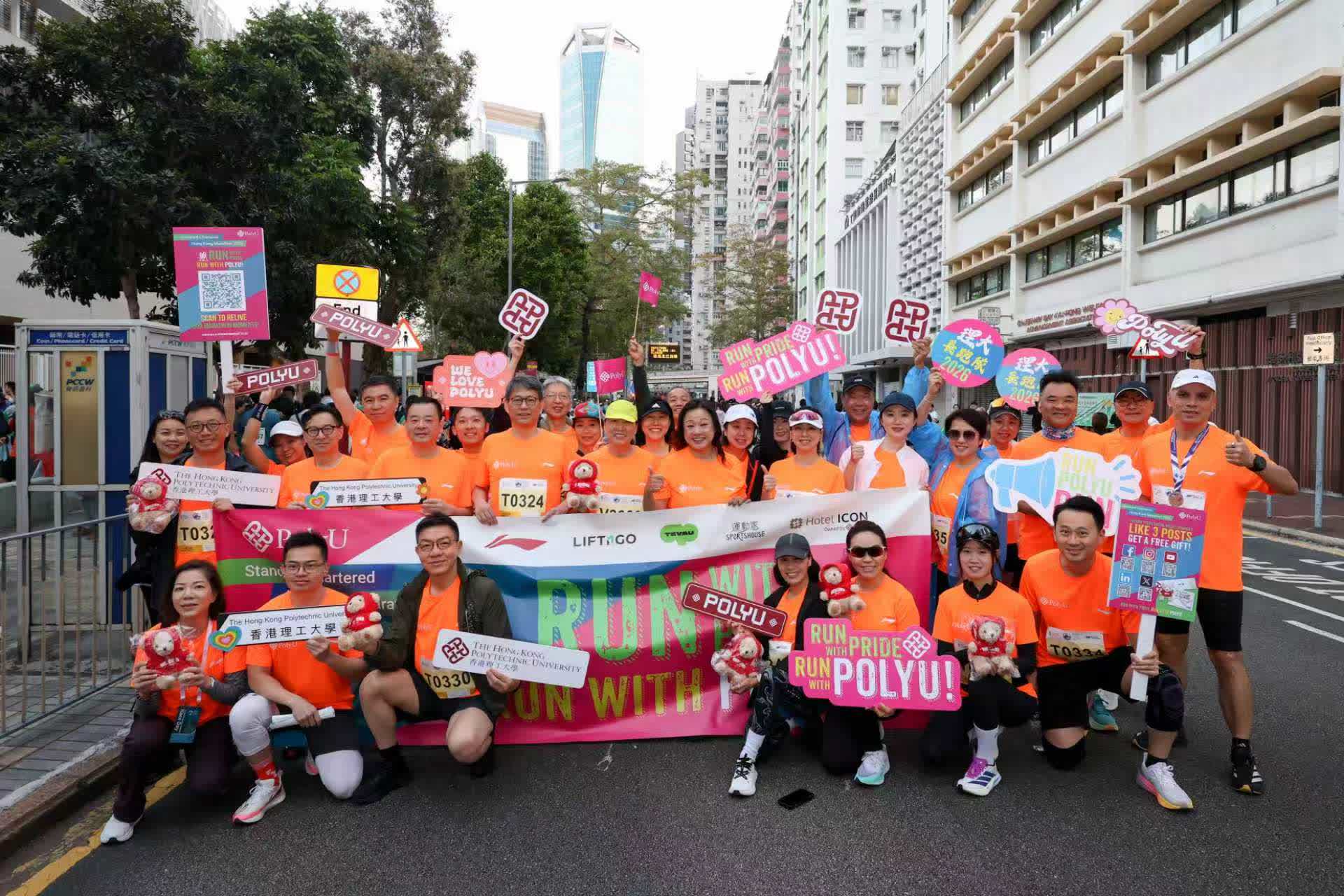 曾連續十年獲渣打香港馬拉松「最鼎力支持大獎」的香港理工大學(理大),今日齊集管理層、學生、教職員、校友及其親友等共約3,000人,共同參與這項年度體育盛事,一同展現「理大精神」,凝聚追求卓越及團結奮進的社群力量。為助力理大跑手全力備戰,爭取佳績,理大發揮跨學科專業優勢與科研實力,以「科技+健康」全方位支援,包括自主研發的「智能步頻感應器」實時監測跑手狀態,同時提供賽前3D足部掃描及跑姿分析、個人化運動復康訓練等,實現「以研助賽、以賽促研」的雙向賦能。