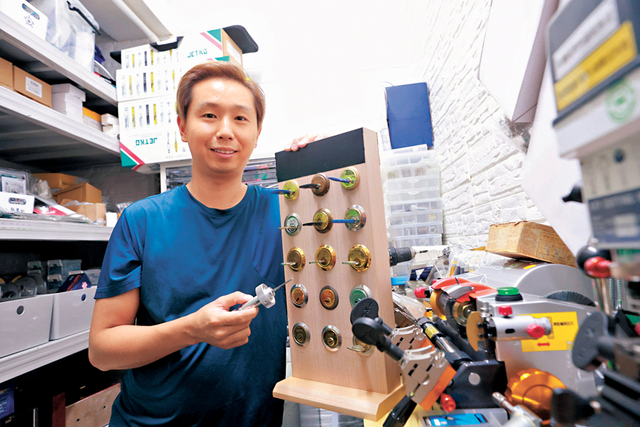 入行六年的「365開鎖」負責人阿軒輕輕鬆鬆撥動門鎖,不消一分鐘,「卡」的一聲即開鎖,這門生財絕技並非與生俱來,而是阿軒經過年月苦練才能掌握的竅門。