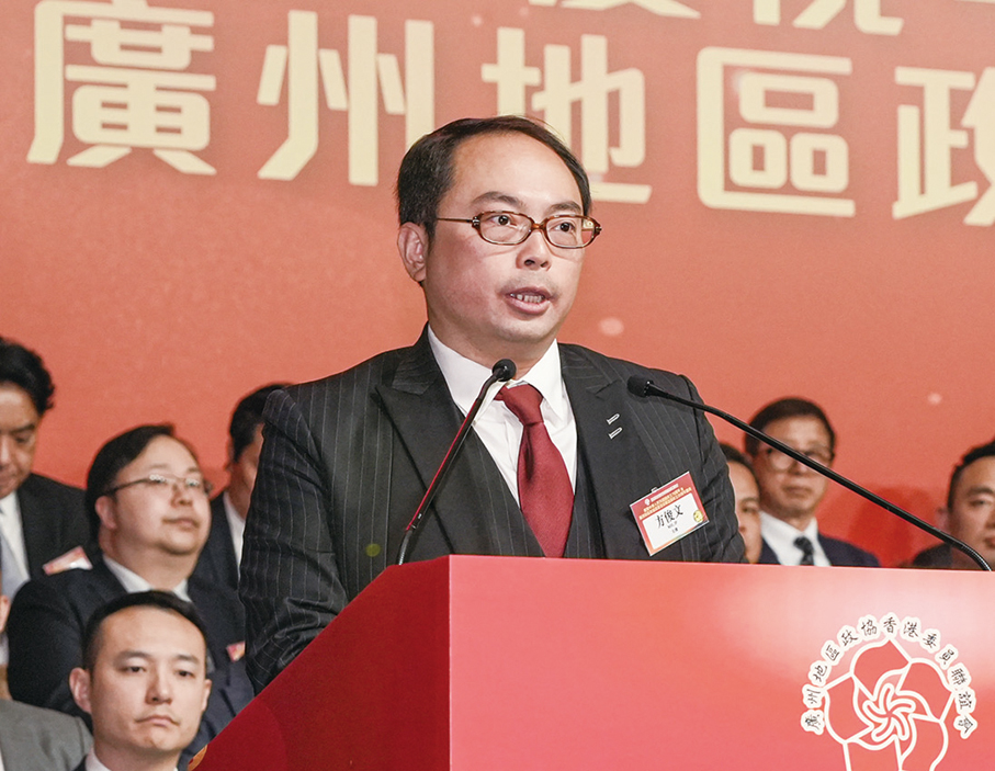 廣州地區政協香港委員聯誼會主席方俊文致辭時,代表全體委員向長期支持聯誼會發展的特區政府,中央政府駐港聯絡辦,廣東省、廣州市及各區政協有關部門,以及社會各界致以誠摯感謝。他指出,自創會以來,聯誼會秉持「服務國家、貢獻香港、團結委員」宗旨,積極融入國家發展大局,堅定支持特區政府依法施政,發揮橋樑紐帶作用,推動穗港兩地在經貿、科技、文化等多領域務實合作,為香港繁榮穩定及國家發展作出重要貢獻。他表示,面向「十五五」規劃新階段,聯誼會將繼續發揮橋樑紐帶作用,推動穗港兩地在創科、金融、文化及經貿等領域深化合作;並推動民生合作,讓穗港人民共享發展成果,提升幸福感與安全感,為實現中華民族偉大復興作出新的、更大的貢獻。