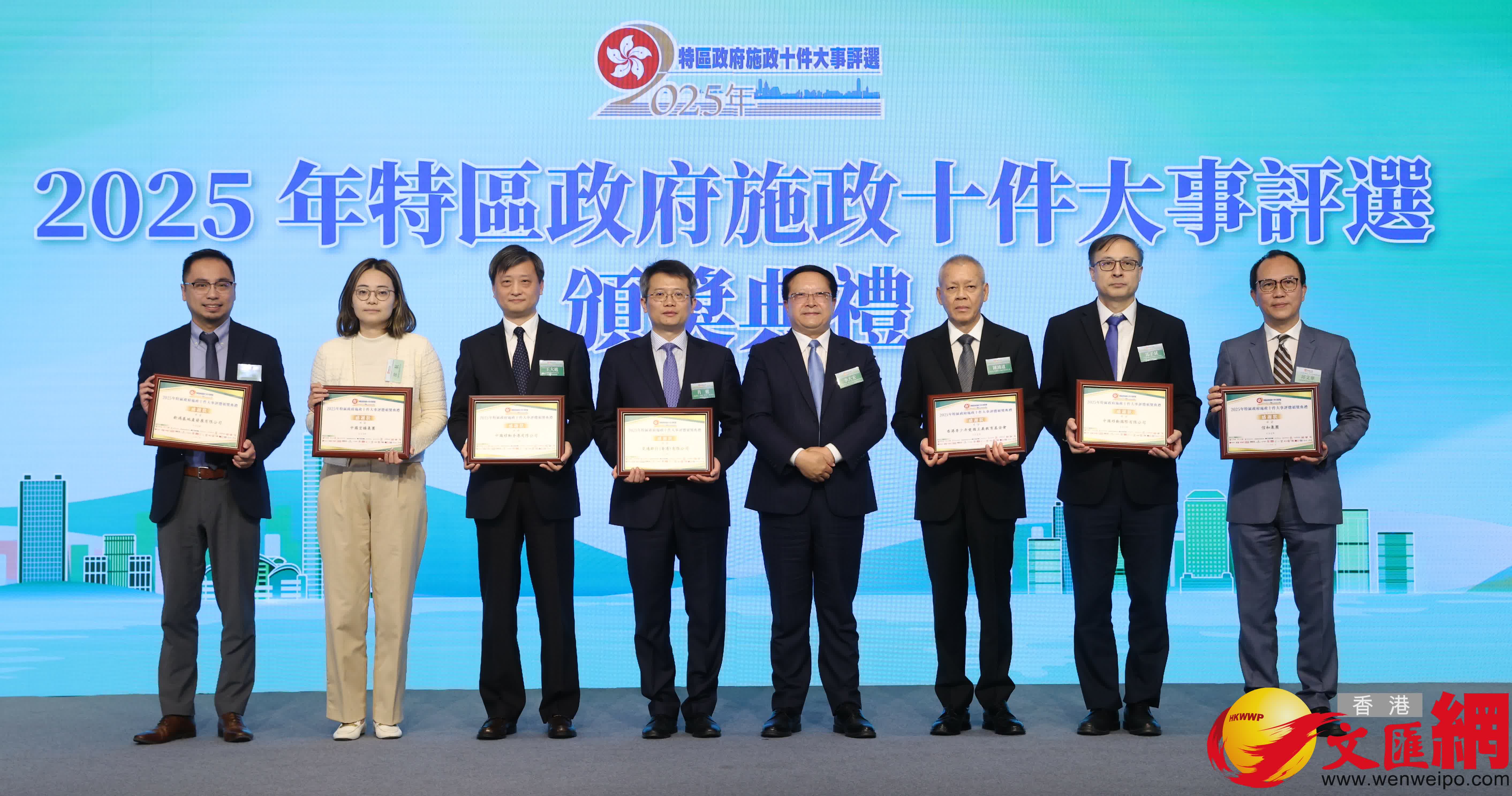 「2025年特區政府施政十件大事」評選結果分別為,「立法會選舉成功舉行 優質民主開創新局」、「宏福苑發生五級大火 齊心協力救災善後」、「粵港澳攜手承辦全運會與殘特奧會 大灣區融合樹新里程碑」、「啟德體育園啟用 成盛事經濟新引擎」、「持續提升國際金融中心地位 推進黃金交易市場建設」、「簡約公屋提速年內入伙惠民 置業階梯放寬轉讓助民安居」、「黎智英危害國安裁定罪成 堅定維護國家安全和香港法治」、「紀念抗戰勝利八十周年 立體多元厚植家國情懷」、「高層決策簡化程序 北都發展全面提速」、「國際調解院正式成立 助港打造『調解之都』」。