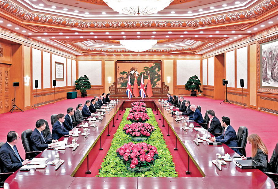 習近平指出,當前國際局勢變亂交織,中英作為聯合國安理會常任理事國和世界主要經濟體,無論是維護世界和平穩定,還是促進兩國經濟民生,都需要加強對話和合作。中方願同英方秉持大歷史觀,超越分歧、相互尊重,把中英合作「大有可為」的潛力轉化成「大有作為」的實績,為中英關係與合作開新局,既造福兩國人民,也惠及世界。